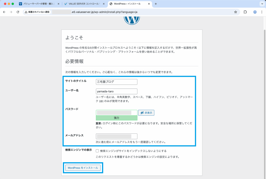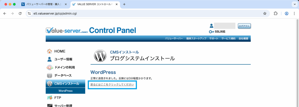 取得したバリューサーバーで、さっそくWordPressをインストール、設定してみましょう。